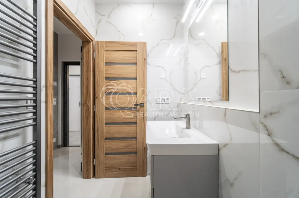 Vybaveno novou kuchyňskou linkou včetně kvalitních vestavěných spotřebičů, indukční varná deska, horkovzdušná trouba, mikrovlnná trouba, myčka nádobí, lednice s mrazákem, digestoř s odtahem, příprava pro pračku. Inovativní rekuperační jednotka pro lepší klima. Moderní interiérové dveře a bezpečnostní vstupní dveře osazené bezpečnostním kováním. Štuky a dekorativní omítky v interiéru bytu a na spol. prostorech. Nová elektroinstalace a LED úsporné osvětlení, moderní RGB LED pásky. Datové rozvody pro optický internet.