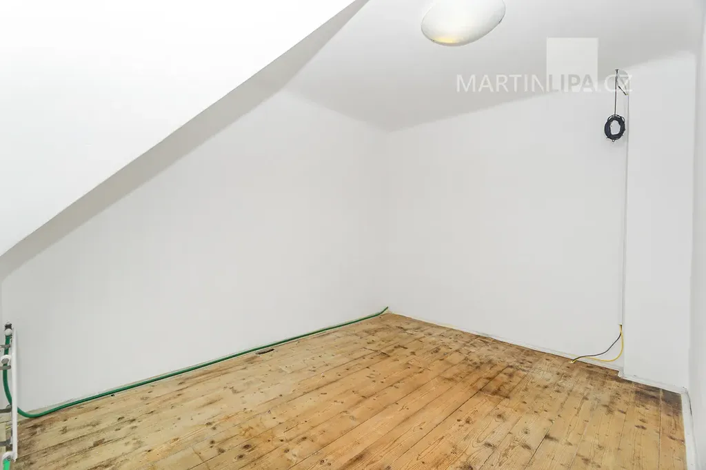 Strašnice. Klidná vilová čtvrť, pár kroků od centra Prahy a přesto úplně jiný svět. Ve Vykáňské ulici stojí dům se třemi bytovými jednotkami a v jeho nejvyšším, tedy druhém patře se právě prodává částečně podkrovní byt o dispozici 2+1 a velikosti 58,4 m².