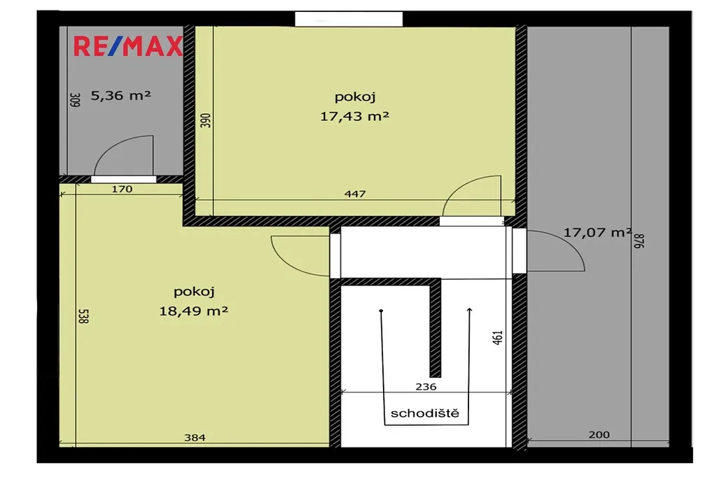 1. patro: dva pokoje, půdní prostor, který lze v rámci rekonstrukce dále využít.