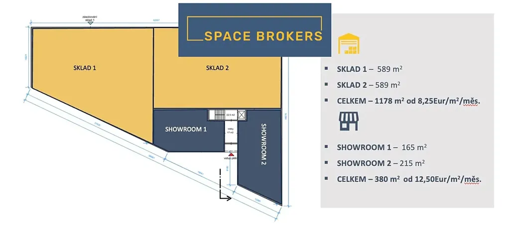 - Showroom/Administrativa - 12,50 EUR/m2/měsíc