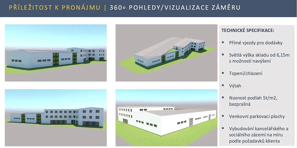 - výstavba dokončena do 9-12 měsíců od podpisu nájemní smlouvy na míru podle požadavků zájemce