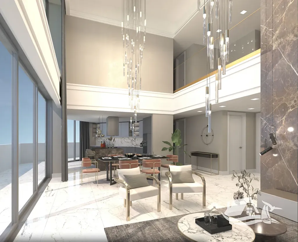 Tento 5 +1 má užitnou plochu 250m2 a terasu 40m2. K dispozici jsou 4 koupelny. Veškeré vybavení je Handsgrohe , Vrf klimatizací a další luxusní prvky. Penthouse se nachází v blok A , kde je nejbližší termín předání projektů a to v Říjnu 2028. Předpokládaná cena pronájmu za noc bude mezi 800 a 1000 eur.