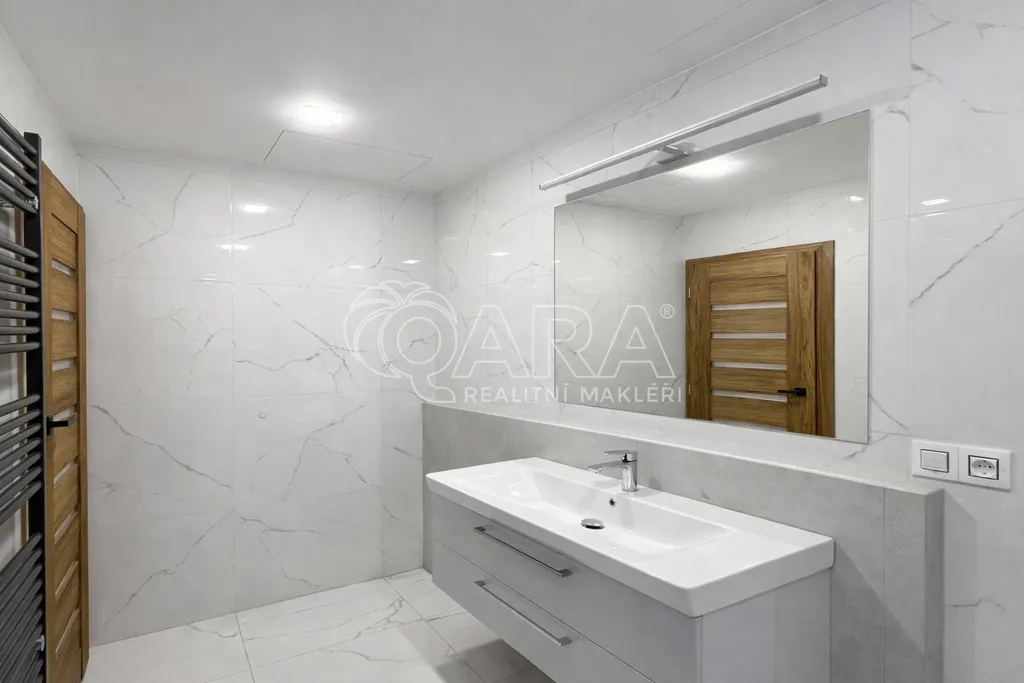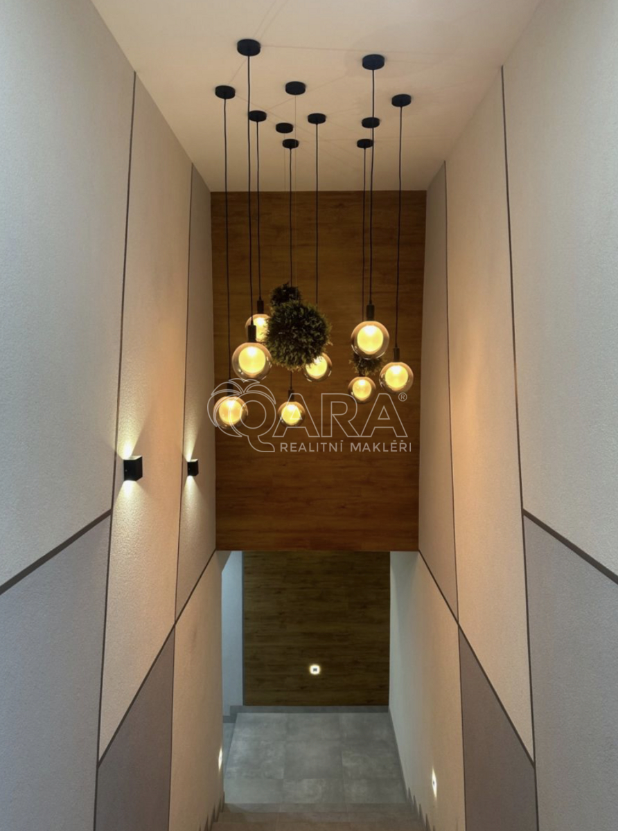 Vybavení: novou kuchyňskou linkou včetně spotřebičů, indukční varná deska, vestavěná horkovzdušná trouba, mikrovlnná trouba, myčka nádobí, lednice s mrazákem, digestoř s odtahem, pračka se sušičkou. Nové interiérové dveře a bezpečnostní vstupní dveře osazené bezpečnostním kováním. Štuky a dekorativní omítky. Stropní podhledy s přidanou zvukovou izolací a světelné LED rampy s RGB barevným efektem. Nová elektroinstalace, rozvody datové sítě pro internet O2, Vodafone, nová rychlá optická sít v domě.