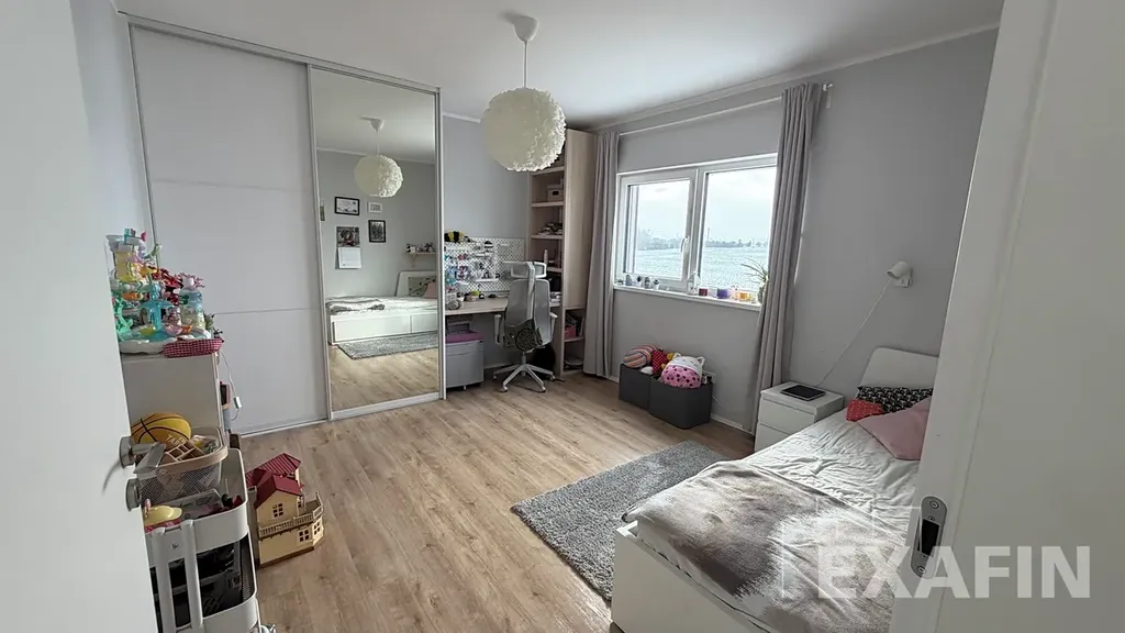 Okna jsou trojskla, na oknech jsou nainstalované předokenní žaluzie. Podlaha je vinylová.