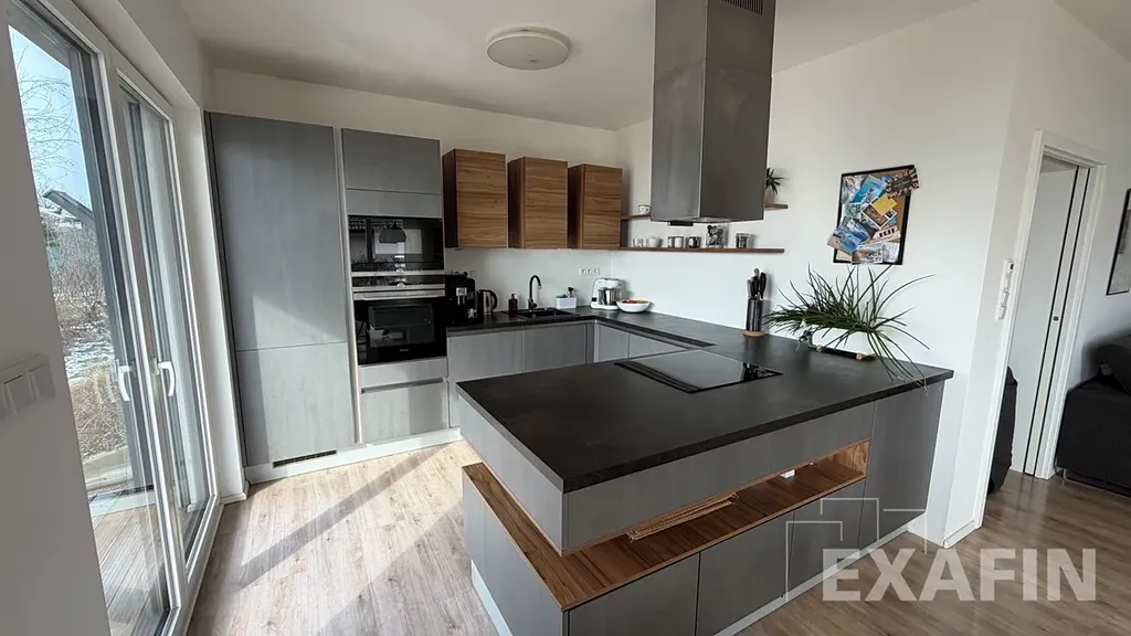 Jedná se o promyšlenou dřevostavbu, která byla postavena před 9ti lety. Praktické uspořádání domu - v dolní části se nachází obývací pokoj napojený na kuchyňský kout, praktická pracovna, která může sloužit i jako ložnice. Z obou místností je vstup na zahradu, která má příjemný výhled do krajiny. V dolní části dále naleznete koupelnu se sprchovým koutem a toaletou, úložný prostor pod schody a technickou místnost. Nechybí ani praktické zádveří.