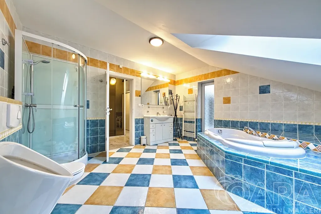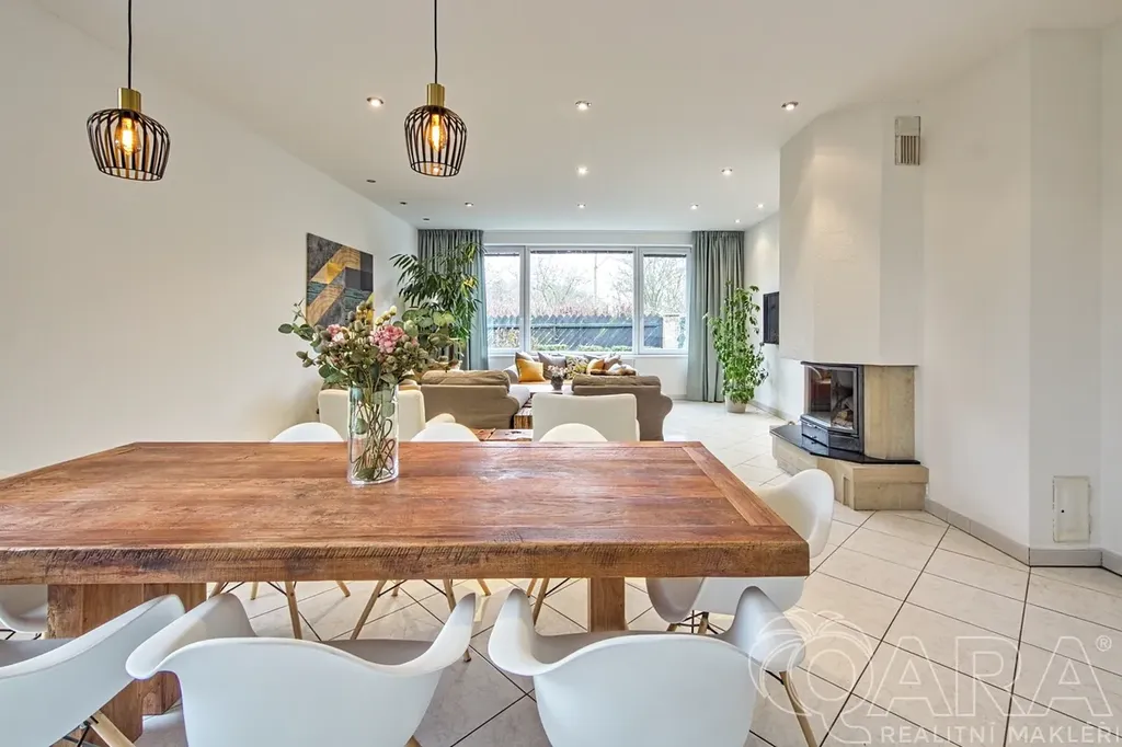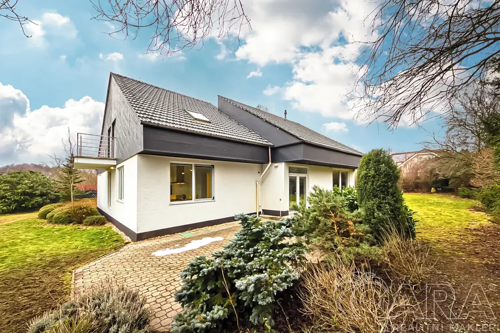Zázemí: dvojgaráž + další parkování na pozemku, mnoho vestavěných šaten a úložných prostor.