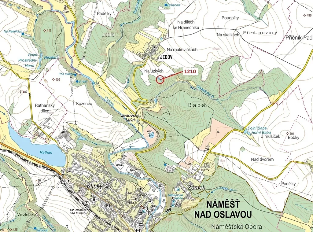 Lesní pozemek o výměře 1128 m2, parcelní číslo 1210, podíl 1/1, katastrální území Jedov, obec Náměšť nad Oslavou, obec s rozšířenou působností Náměšť nad Oslavou, okres Třebíč, Kraj Vysočina.