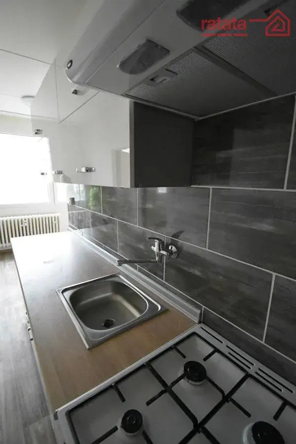Je zde kuchyňská linka, plynový sporák, vana s umyvadlem a WC. Na podlahách je položeno lino s dřevodekorem a koberce. Byt je volný k nastěhování od 1.3.2026.