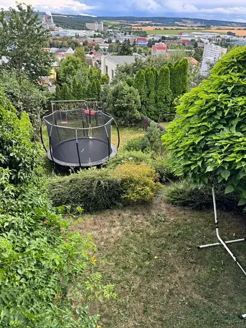 Součástí domu je oplocená okrasná zahrada a terasa s krásným výhledem, klidem a soukromím.