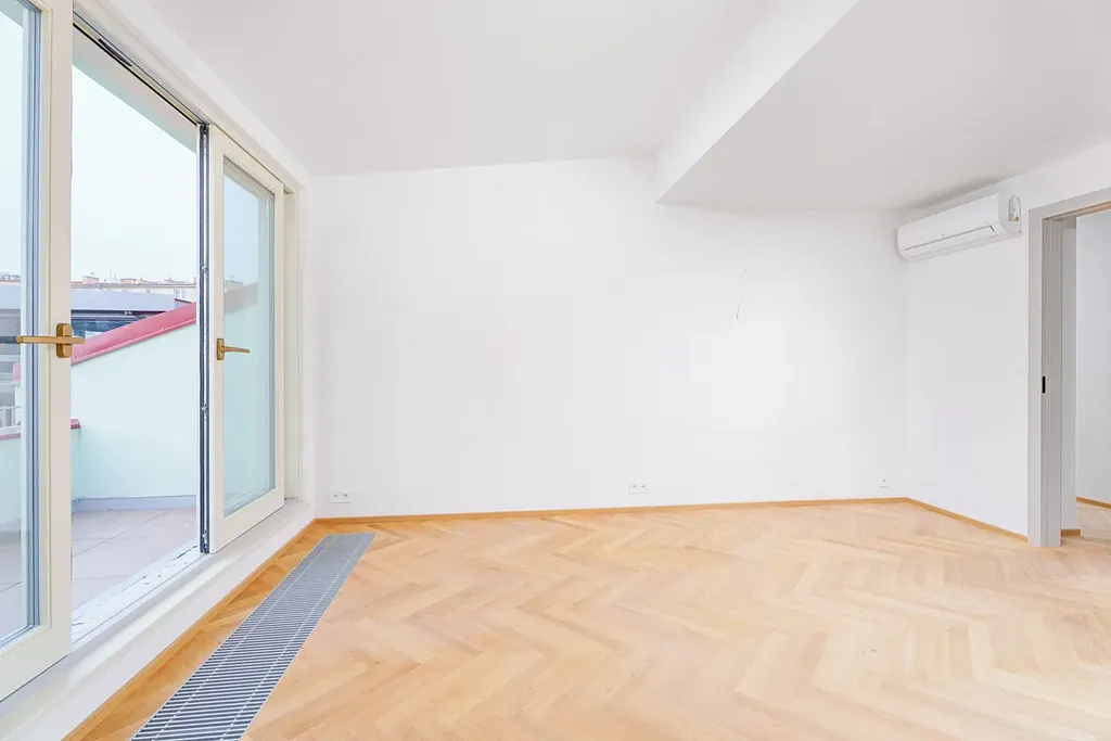 Novostavba podkrovního bytu o celkové ploše 63,6 m² v 6. nadzemním podlaží kompletně zrekonstruovaného cihlového domu s proskleným výtahem v ulici Bořivojova 825/31, Praha 3. K nastěhování březen 2026.