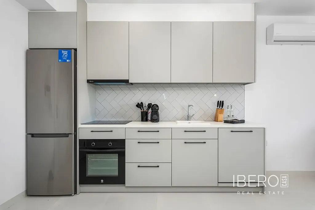 Nemovitost se prodává plně zařízená a skládá se ze světlého obývacího pokoje s jídelnou, plně vybavené otevřené kuchyně, dvou ložnic s vestavěnými skříněmi, dvou koupelen s podlahovým vytápěním a slunné terasy. V ceně je také úložný prostor a parkovací místo v podzemní garáži.