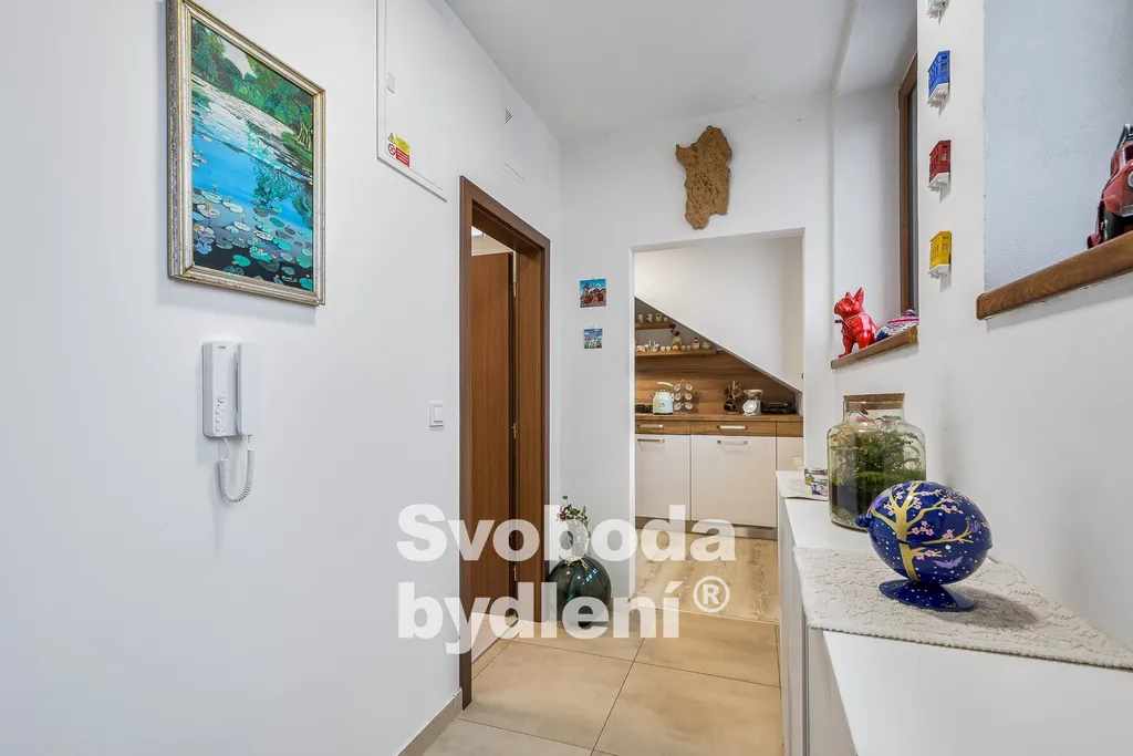 Celý byt navozuje útulnou a stylovou atmosférou díky citlivé a praktické promyšlené rekonstrukci včetně jeho současného vybavení, jež je možné v bytě ponechat. Plastová okna v dekoru zlatého dubu jsou s izolačním trojklem, střešní okna Velux jsou opatřena protislunečními roletkami. Celková podlahová plocha bytu je 64,2m2 plus komora 2,3m2 na stejném podlaží u výtahu. Byt je pečlivě udržovaný a vkusně vybavený moderním nábytkem.