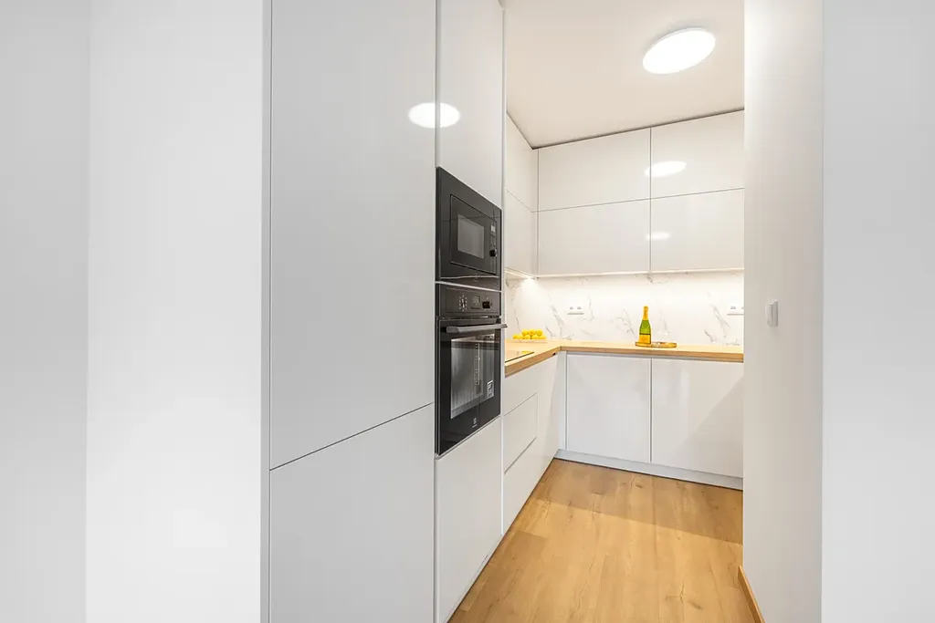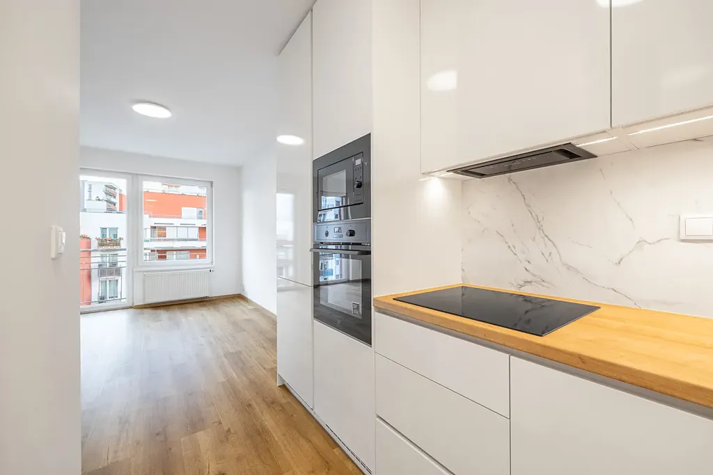 - nová kuchyňská linka vyrobena na míru se spotřebiči (značková elektrická trouba, myčka, indukční deska, digestoř, osvětlení, dřez)