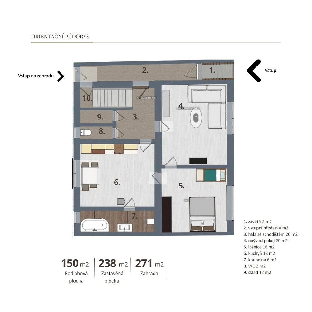 Velkým bonusem je půdní prostor — je zde připravena studie na rozsáhlou podkrovní vestavbu. Nový majitel tak může do budoucna rozšířit obytnou část nebo nemovitost zajímavě investičně zhodnotit.
