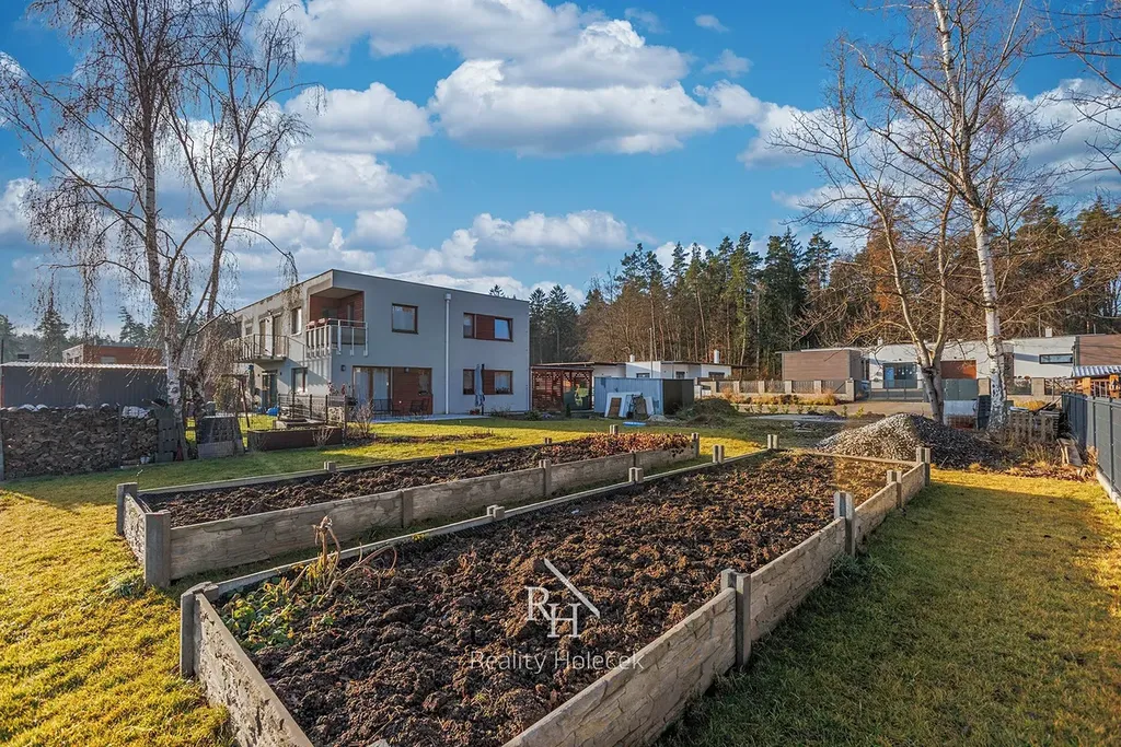 Součástí je zahrada o 677 m², na které vytvoříte místo, kde mohou děti bezpečně běhat od jara do podzimu. Terasa je dokonalá pro letní večery, obědy venku nebo posezení s přáteli. A pokud toužíte po zázemí venku, je tu už příprava na zahradní domek. A kdyby vás lákal bazén – nic tomu nebrání.
