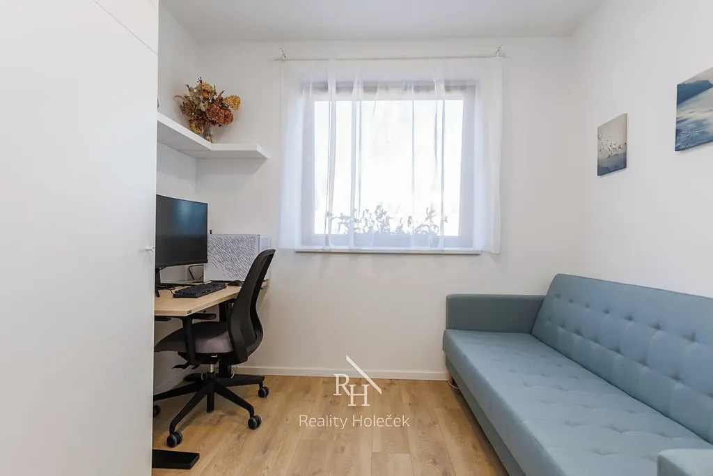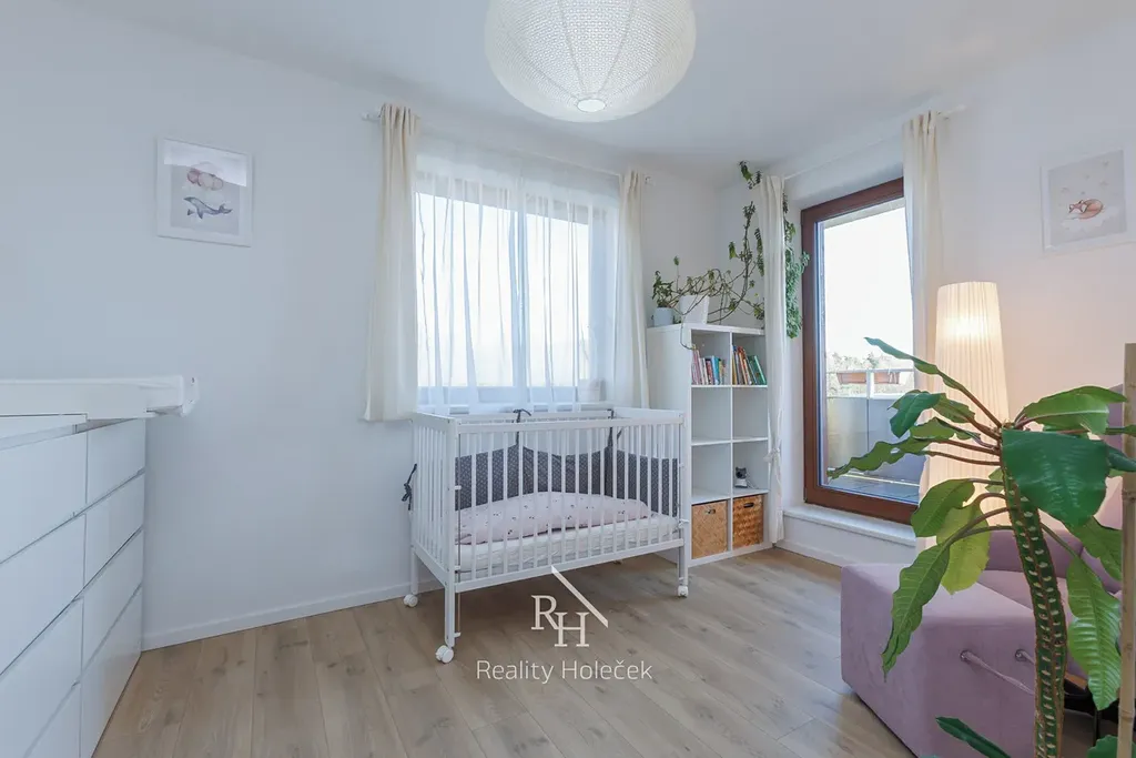 Přízemí je připravené pro společný rodinný život – velký obývák s kuchyní je srdcem bytu a přirozeným centrem rodiny. Pracujete na home office? Pak Vám přijde vhod pracovna, která může posloužit i jako pokoj pro hosty. V patře pak najdete soukromé pokoje, druhou koupelnu a šatnu, kterou jistě ocení Vaše drahá polovička.