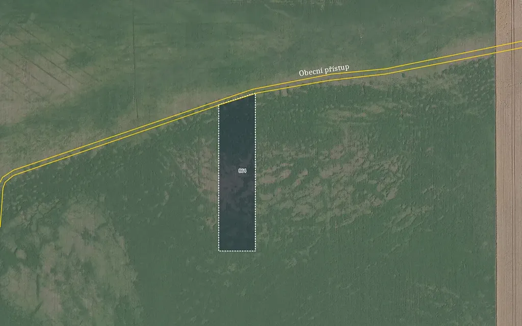 Pozemek má celkovou výměru 4 343 m² a je ve výlučném vlastnictví (100 %). Nachází se v rovinatém zemědělském bloku, v jehož rámci je nyní užíván. Dle KN je k němu ale zaveden přístup po parcele v obecním vlastnictví. Parcela má vhodný tvar pro hospodaření.
