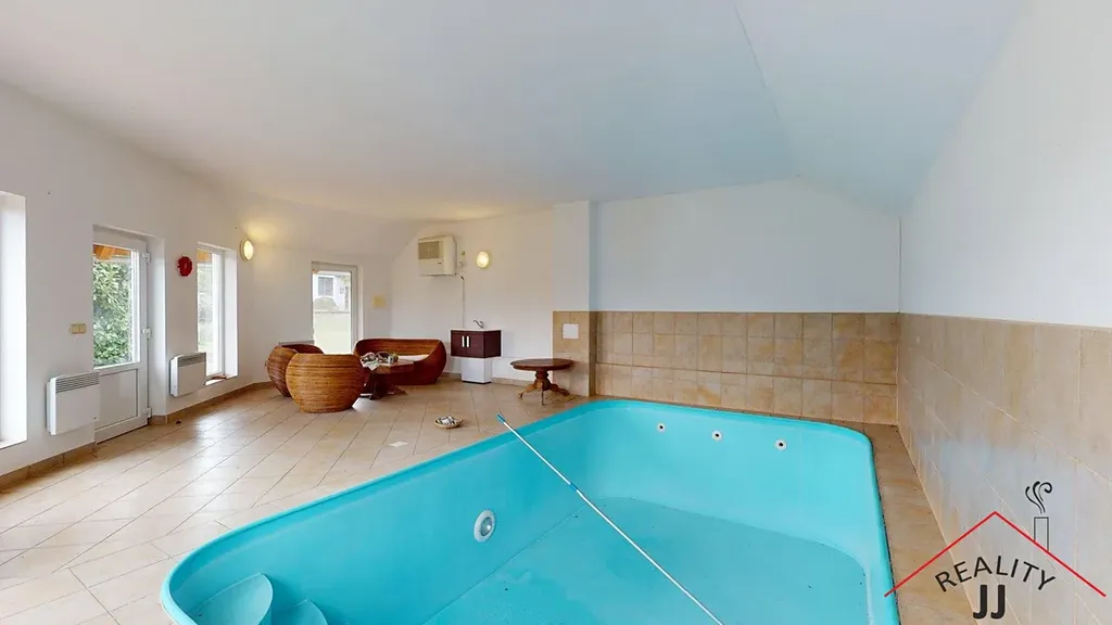 Atraktivitou tohoto objektu je bezesporu velký vnitřní bazén s plochou 35 m² a příjemným posezením, ideální pro rodinnou rekreaci, Velká zahrada poskytuje prostor pro pěstování květin, zeleniny a bylinek, pergola s venkovním krbem pak příjemné posezení při grilování, v bezprostřední blízkostí od dětského hřiště s prolézačkami aj.