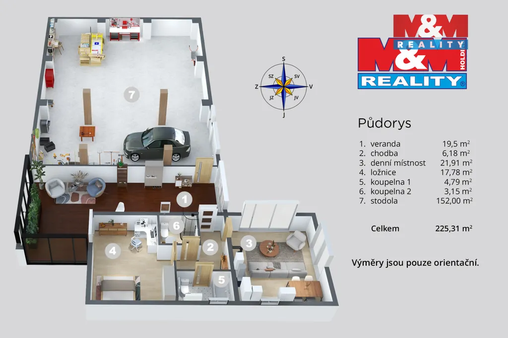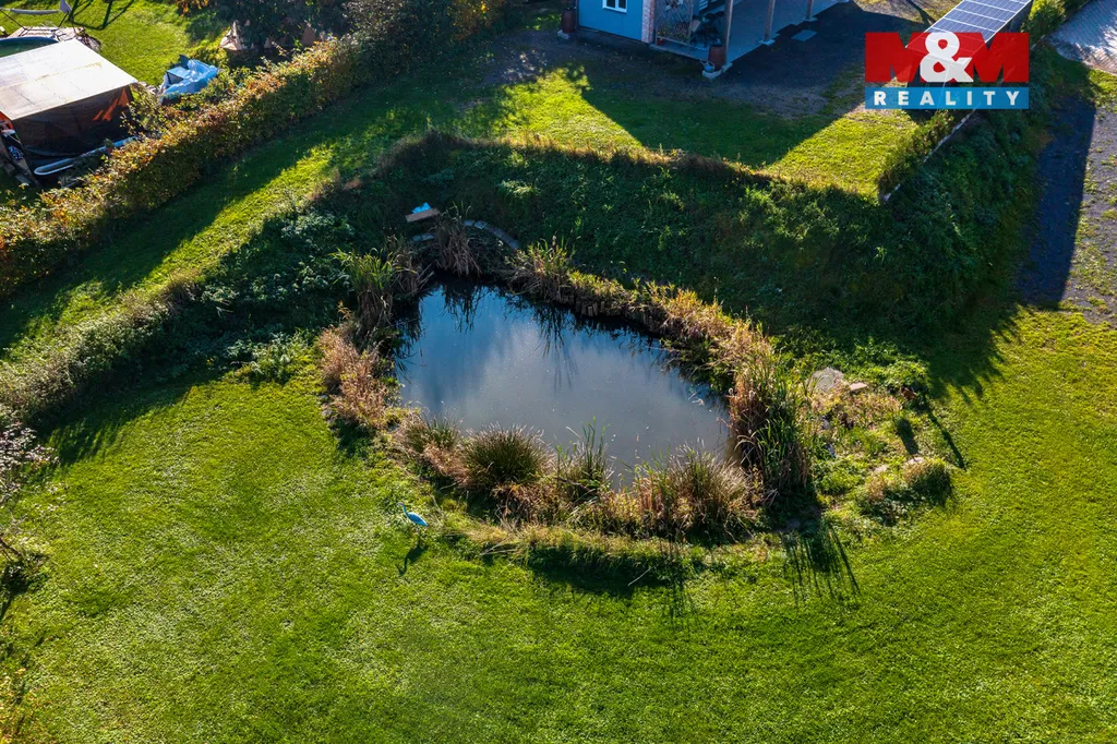 Dům se skládá z dispozice 2+kk se dvěmi koupelnami a prostornou zimní zahradou. Dále je zde prostorná stodola o ploše cca 150 m², která je vhodná například i pro podnikatelskou činnost. Vytápění je řešeno třemi způsoby: elektrokotlem, krbovými kamny a podlahovým topením. Velkou výhodou této nemovitosti je výkonná fotovoltaická elektrárna. Rodinný dům stojí na rozlehlém pozemku o výměře 2 307 m². Zahrada je převážně rovinatá, což nabízí mnoho možností pro zahradničení, relaxaci či rodinné aktivity. Dále je na pozemku vybudované jezírko. Nemovitost umožňuje okamžité nastěhování nebo úpravy podle vlastních představ. Ideální pro ty, kteří hledají harmonii přírody v dosahu města. Pro více informací a domluvení prohlídky kontaktujte makléře. Optimální financování Vám zdarma zajistí naši hypoteční specialisté.