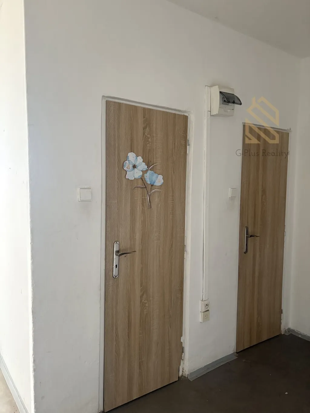 Byt disponuje balkonem a prostornou, velkou chodbou, která poskytuje dostatek úložného prostoru.