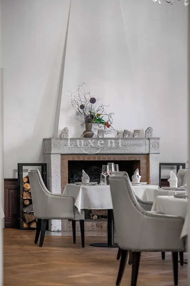 Srdcem této výjimečné rezidence o užitné ploše 1 585 m² je noblesní hlavní sál s krbem, který vytváří hřejivou a zároveň majestátní atmosféru – ideální pro rodinná i společenská setkání. Ze sálu je přímý vstup na terasu plynule navazující na rozlehlou zámeckou zahradu (4 253 m²) s jezírkem (1 536 m²), altánem a fontánou.