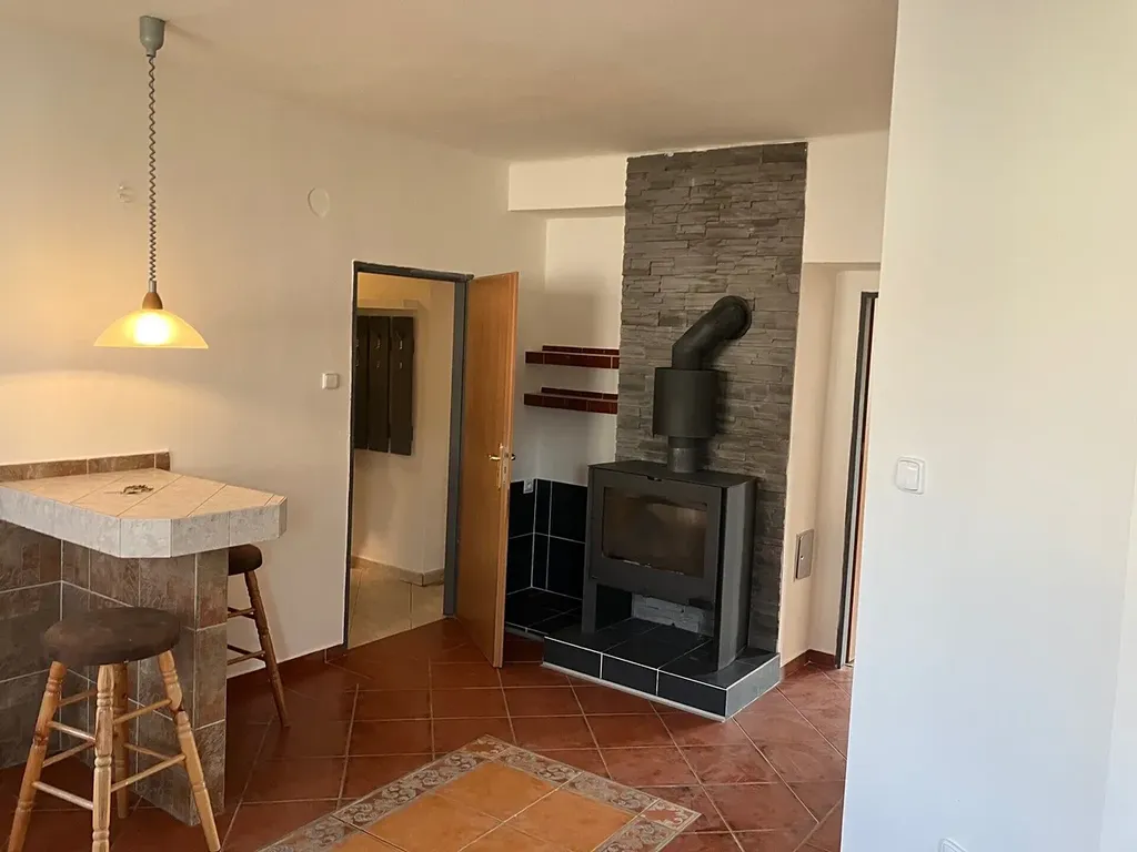 V obývacím pokoji jsou krbová kamna. Velký sklep, cca 10 m2. V koupelně je vana i sprchový kout.