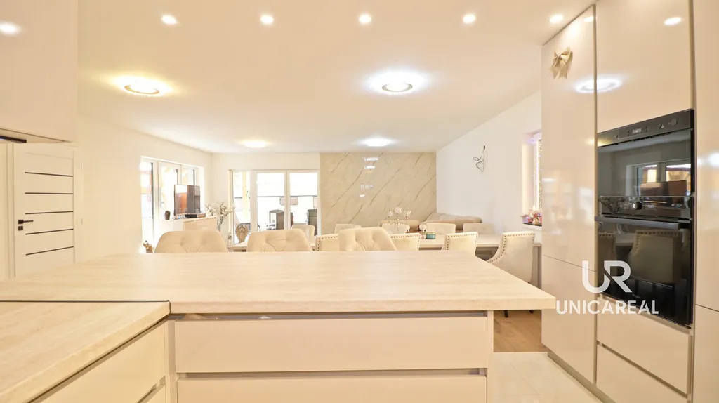 Interiér je již připraven k nastěhování včetně kompletně dokončené kuchyňské linky a k úplnému finále zbývá vydláždění terasy a dokončení fasády vč. úpravy okolí.