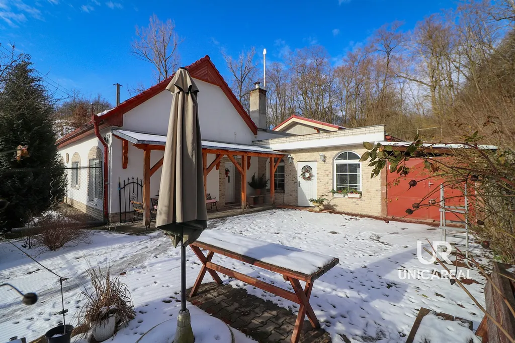 Na pozemku, který díky své poloze 687 m² na kraji obce zaručuje absolutní nerušenost bez sousedů, najdete dvě stavby, které se navzájem dokonale doplňují. První z nich je moderní dřevostavba s dispozicí 3+kk a užitnou plochou 103 m², která se právě nachází ve fázi před kolaudací. Tento dům je energeticky úsporný , o čemž svědčí i energetická třída A.