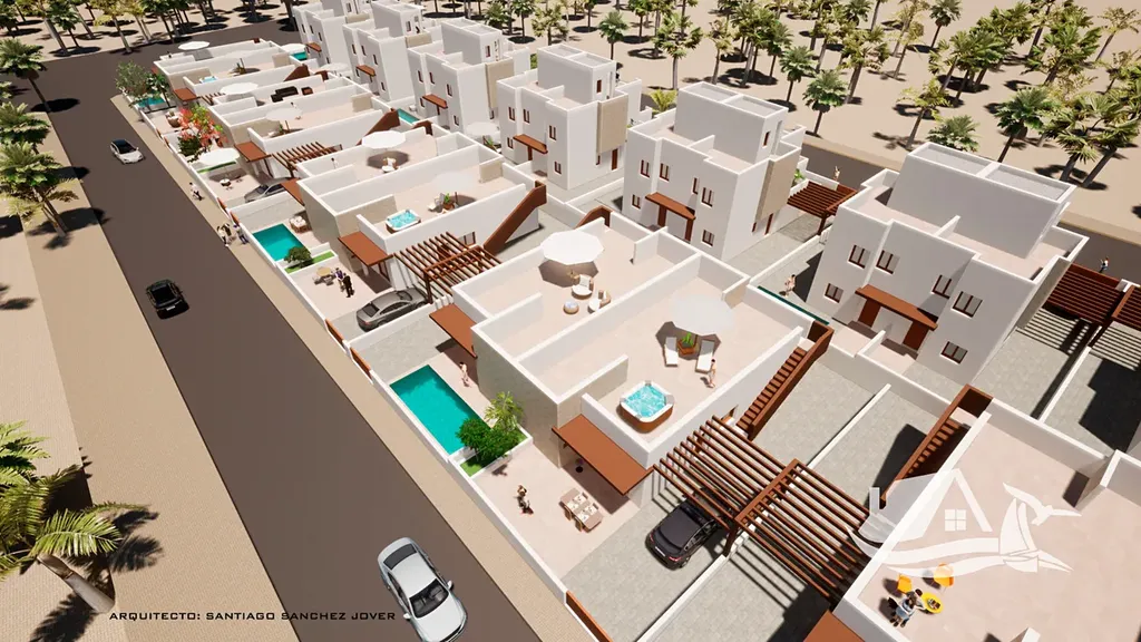 V Mazarrónu, v klidné rezidenční části, vzniká projekt deseti řadových domů, které dávají smysl pro rodinný život i jako promyšlená investice. Jeden kilometr od moře znamená každodenní kontakt s pobřežní atmosférou bez turistického ruchu přímo pod okny. Ranní běh k pláži, víkendové koupání a večerní posezení na terase se tady stanou přirozenou součástí života.