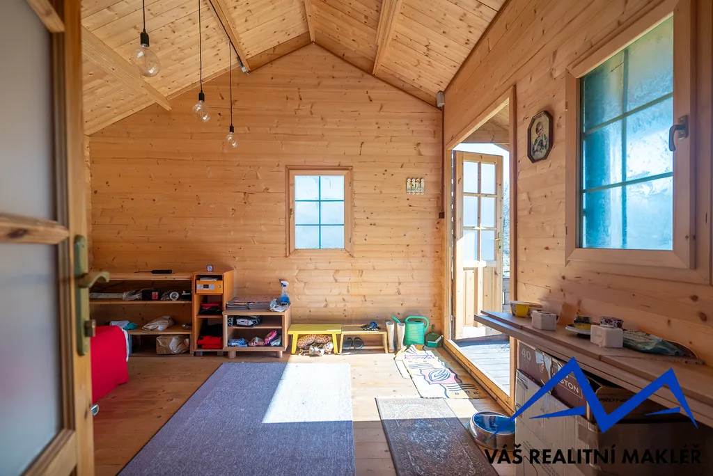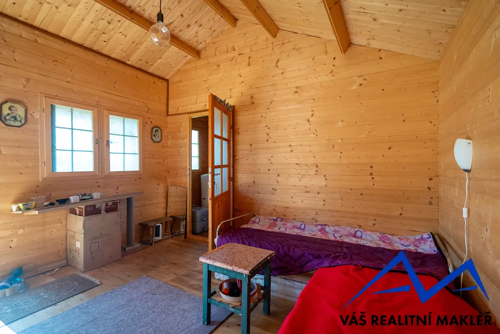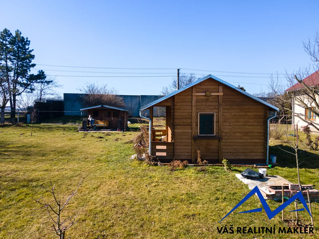 Pozemek je upraven, zatravněn a k dispozici nabízí dvě dřevěné chatky, napojené na elektrický proud a vodu ze studny.