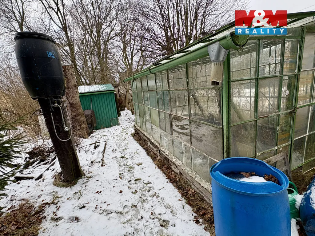Na zahradě se nachází dřevěná chatka, vhodná k rekonstrukci dle vlastních představ. Dále se zde nachází starší skleník, udírna, ohniště, uzamykatelná bouda na uskladnění nářadí, suché WC.