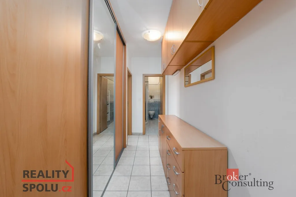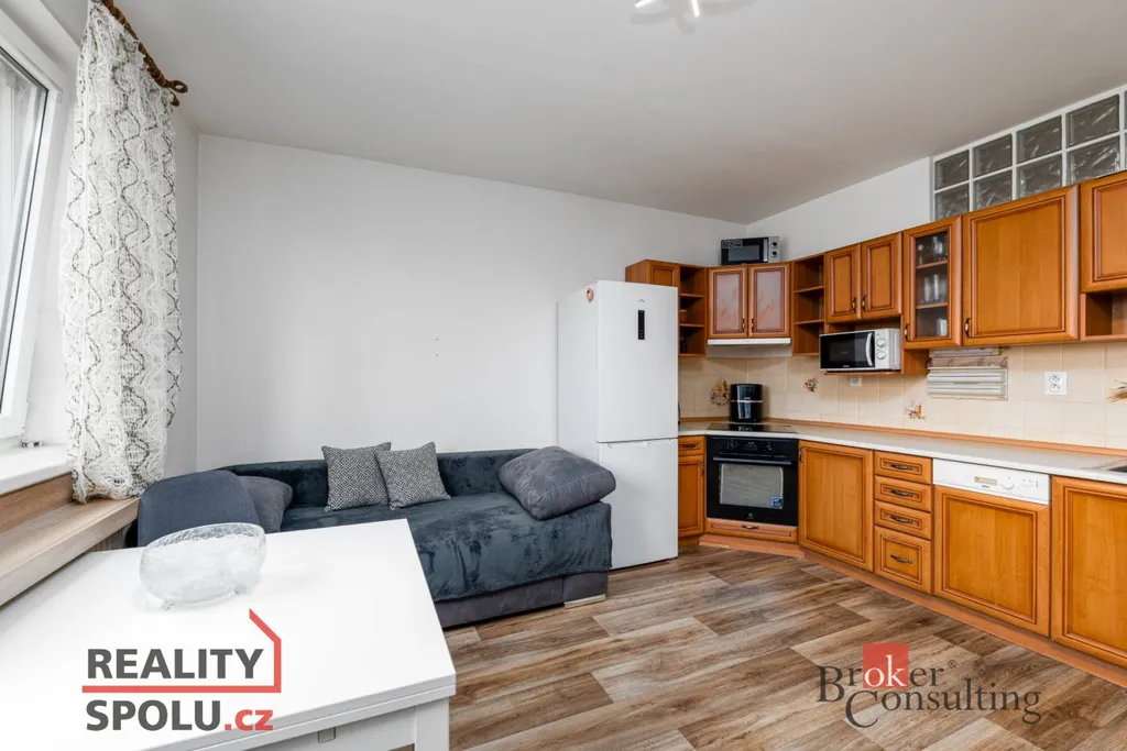 Dispozice bytu je funkční a praktická. Z předsíně, která nabízí mnoho úložného prostoru, je vstup do koupelny a do hlavního obytného prostoru, kde se přirozeně propojuje kuchyňská část s obývací zónou. Kuchyň nabízí dostatek úložného prostoru i pracovní plochy, obývací část působí útulně a vzdušně zároveň.