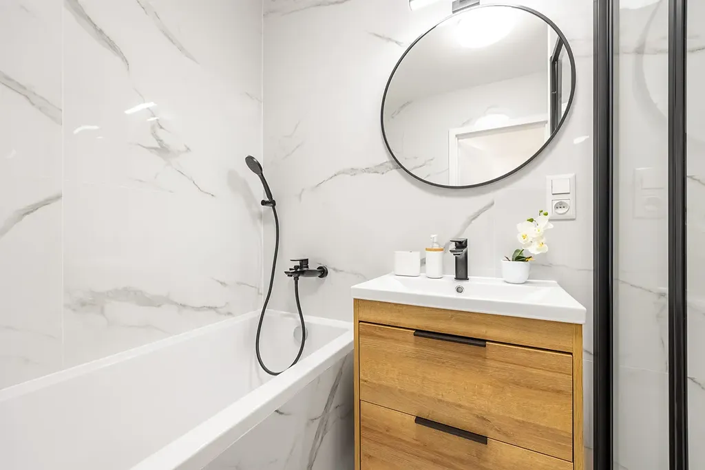 - nová sanita (vana, sprcha, umyvadlo, skříňka, toaleta)