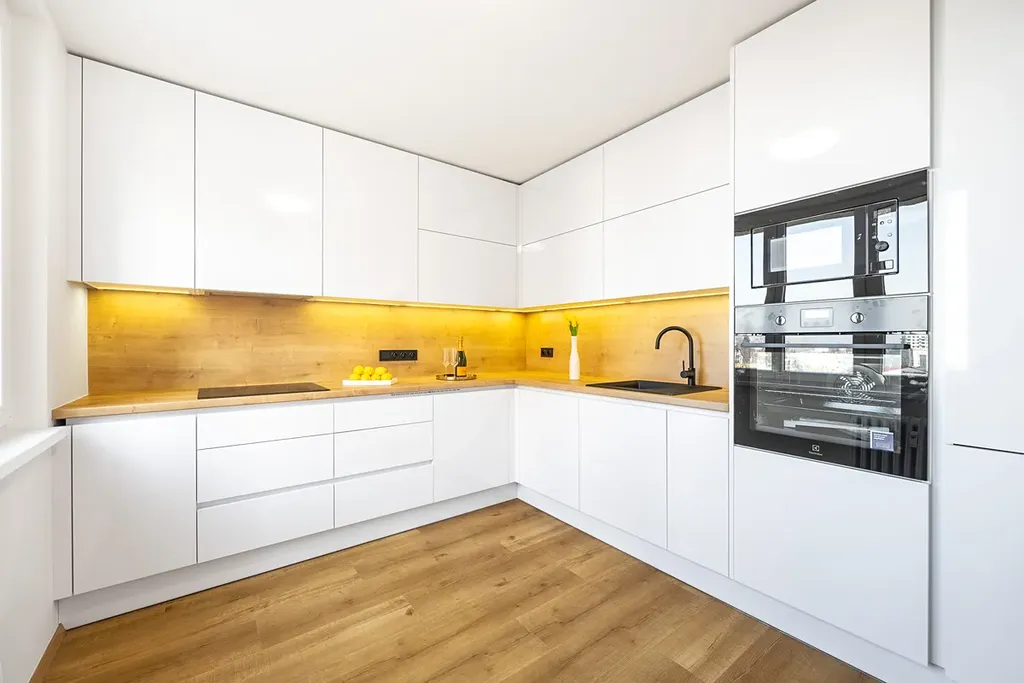 - nová kuchyňská linka vyrobena na míru se spotřebiči (značková elektrická trouba, myčka, indukční deska, digestoř, osvětlení, dřez)