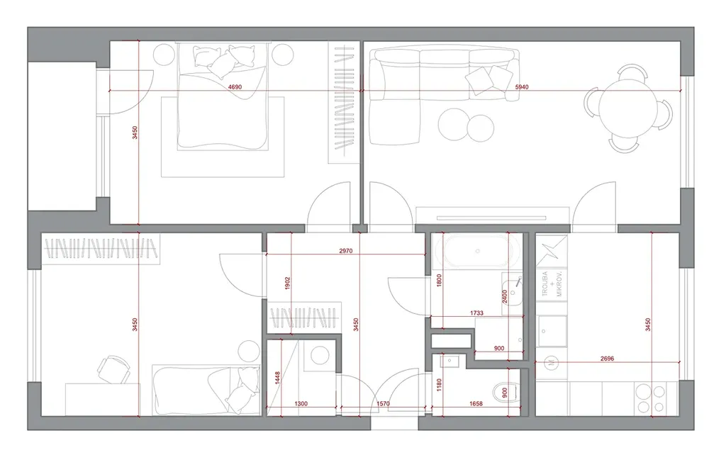 V kompletní rekonstrukci ve standardu novostavby je zahrnuto: