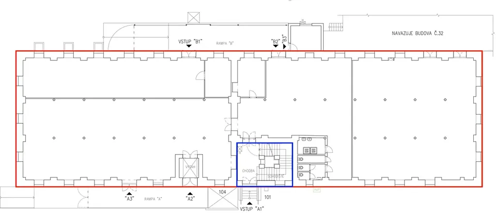 Členění prostoru je znázorněno v dispozičním řešení u fotografií. Některé příčky jsou SDK. Dle potřeby je možné prostory i jinak členit. Přístup je přes rampy ze dvou stran. Jedna rampa je uzavřena a uzamykatelná, může být součástí pronájmu. V případě zájmu o bližší informace, případně o prohlídku kontaktujte makléře.