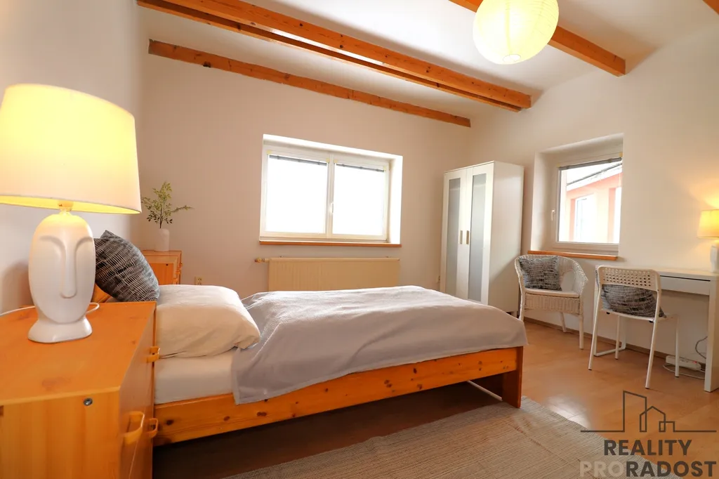 Jedná se o byt po nedávné rekonstrukci, který se nachází ve 3. podlaží udržovaného cihlového domu. Nabízí se jako kompletně zařízený a vybavený. Po vstupu do bytu se ocitnete v předsíni vybavené objemnými vestavěnými skříněmi pro pohodlné uložení věcí. Z chodby se plynule přechází do hlavního, vzdušného obývacího pokoje, jehož součástí je moderní kuchyňský kout. Kuchyňská linka disponuje štědrou pracovní plochou a je osazena kvalitními vestavěnými spotřebiči (lednice s mrazákem, elektrická trouba, indukční varná deska, myčka nádobí).