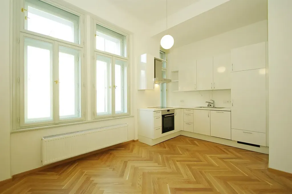 Nezařízený zrekonstruovaný byt 2+kk (1 ložnice, 1 koupelna), o celkové obytné ploše 44,46 m2, je situován ve 2. patře kompletně zrekonstruované rezidenční budovy s výtahem, v oblíbené historické lokalitě Vinohrady na Praze 2, ulice Balbínova.