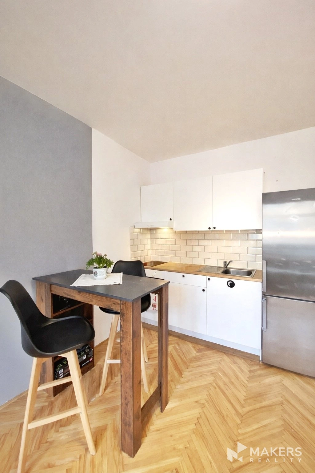 Nabízíme k prodeji útulný a plně vybavený byt o dispozici 1+kk s užitnou plochou 22 m² se sklepní kójí, který se nachází ve 2. nadzemním podlaží udržovaného cihlového domu v klidné části Prahy – Libeň.