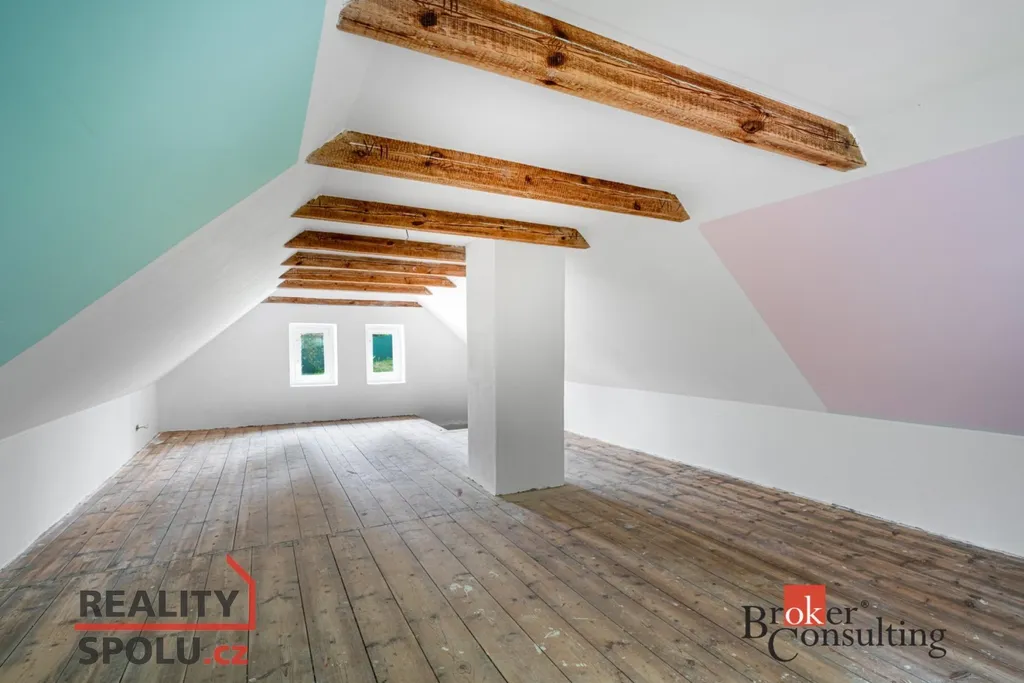 • dvě obytná podlaží + zateplené podkroví (cca 57 m²) připravené k dalšímu využití