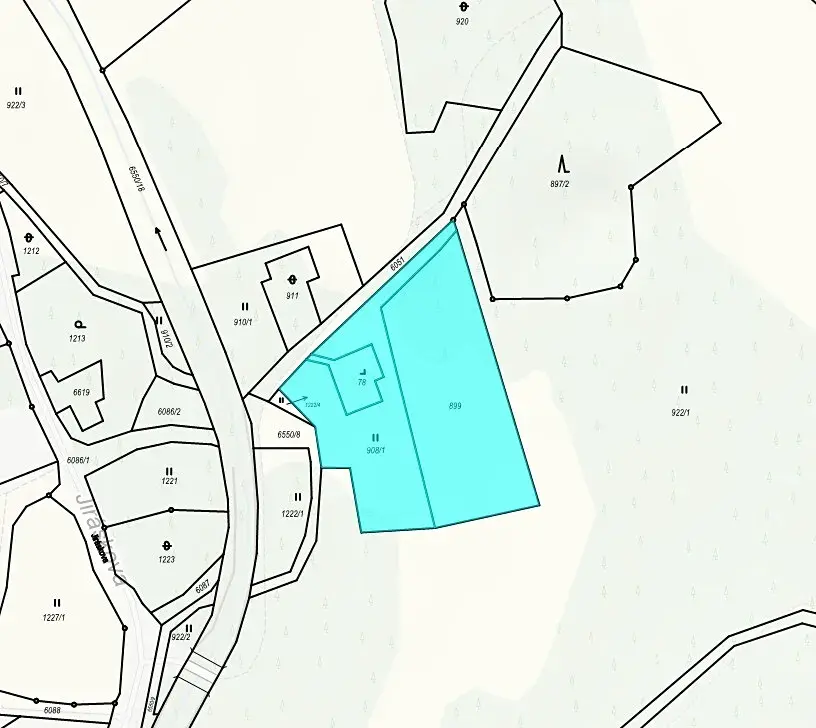 Předmětem dražby je ideální spoluvlastnický podíl o velikosti 1/6 (jedna šestina) ) na pozemcích parc. č. St. 78 (zastavěná plocha a nádvoří), parc. č. 899 (orná půda) a parc. č. 908/1 (trvalý travní porost) v kat. území Jiříkov, obec Jiříkov. Pozemky se nacházejí na severním okraji zastavěné části města Jiříkov. Jedná se o soubor sousedících travnatých pozemků nepravidelných tvarů. V katastru nemovitostí jsou pozemky vedené jako zastavěná plocha a nádvoří, orná půda a trvalý travní porost o výměře 2 813 m2. Soubor pozemků je na severozápadní straně ohraničený nezpevněnou cestou. Na travnatých pozemcích se nacházejí listnaté porosty. Pozemky jsou svažité k severozápadní straně. V době oceňování byly pozemky neudržované a nevyužívané. K pozemkům vede nezpevněná cesta, nacházející se na pozemku parc. č. 6051, který je ve vlastnictví města Jiříkov.