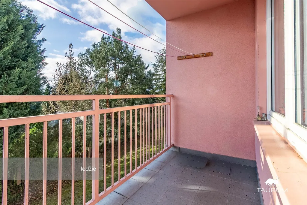 Byt je umístěný v 1. patře domu a má dispozici 2+1. Jeho výměra je 65 m2 včetně lodžie. Všechna jeho okna směřují do zeleně na jihovýchodní stranu, včetně prostorné lodžie přístupné z obývacího pokoje. Byt je ve výborném stavu, který umožňuje okamžité bydlení bez nutnosti jakýchkoliv dalších úprav.