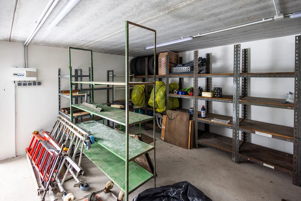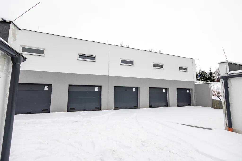 V obou budovách je celkem 30 garážových/skladových stání, některé z nich jsou ale propojené, aby vznikly větší prostory a celkově větší variabilita využití.