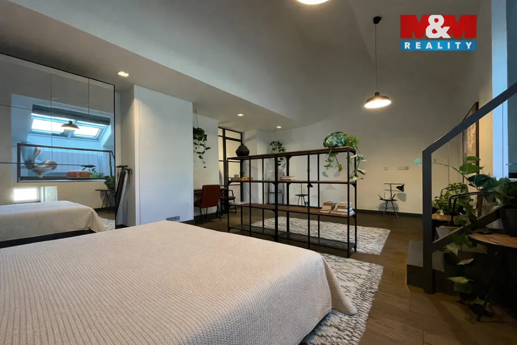 Also suitable for english-speaking clients. Nabízíme k pronájmu nadstandardně zařízený prostorný byt 2+kk s klimatizací o rozloze 92 m² kousek od st. metra B Náměstí Republiky. Byt má neprůchozí ložnici s vyvýšeným patrem, které lze využít pro příjemný odpočinek, k práci či jako úložný prostor. Z obývacího pokoje je vstup na balkón, odkud je mimořádný výhled na Vltavu. Kuchyň je vybavena lednicí, myčkou, indukční varnou deskou, konvicí i kávovarem. V koupelně najdeme vanu, WC i pračku. Byt se nachází v posledním patře cihlového domu s výtahem. Nabízí skvělou dopravní dostupnost – v blízkosti se nachází zastávka tramvaje a autobusu Dlouhá třída, stanice metra Náměstí Republiky je pak vzdálena cca 5 minut chůze. V blízkosti se nachází obchodní dům Palladium, který nabízí kromě nákupních příležitostí i možnost parkování. V okolí je také dostatek zeleně a prostoru pro sport, relaxaci i venkovní aktivity.
