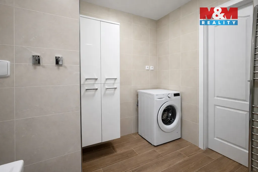 Koupelna disponuje prostorným sprchovým koutem a pračkou, toaleta je samostatná. Ve všech místnostech je instalováno LED stmívatelné osvětlení.