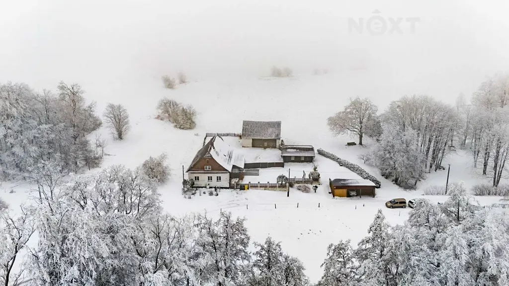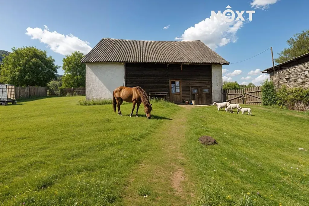 Součástí prodeje je dům s navazujícími pozemky o celkové výměře 13 985 m² včetně zastavěné plochy. Rozsáhlé přilehlé pozemky dávají nemovitosti prostor a svobodu využití. Dispozice domu je členitá a umožňuje další úpravy či rozšíření podle potřeb nového majitele. K domu náleží také chlév a stodola, které podporují původní hospodářský charakter stavby.