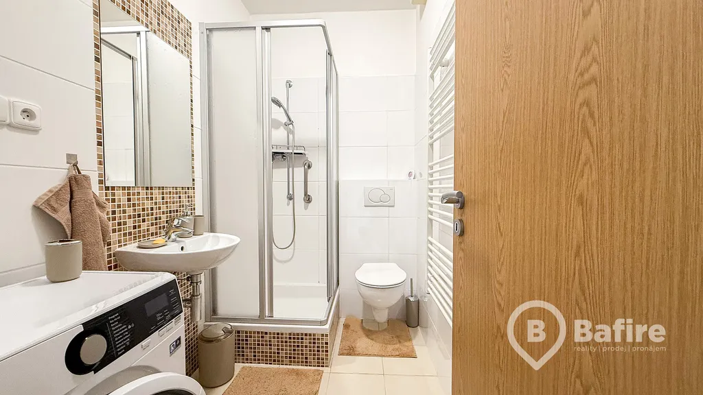 Kuchyňská linka je vybavena všemi nezbytnými spotřebiči - myčka, elektrická trouba, varná deska včetně digestoře, lednice s mrazákem. V koupelně se poté nachází novější pračka značky AEG. Veškerý nábytek, kterým je byt zařízen, je ve velmi dobrém stavu. Postačí si zabalit pouze své osobní věci a odstartovat novou životní etapu právě tady.