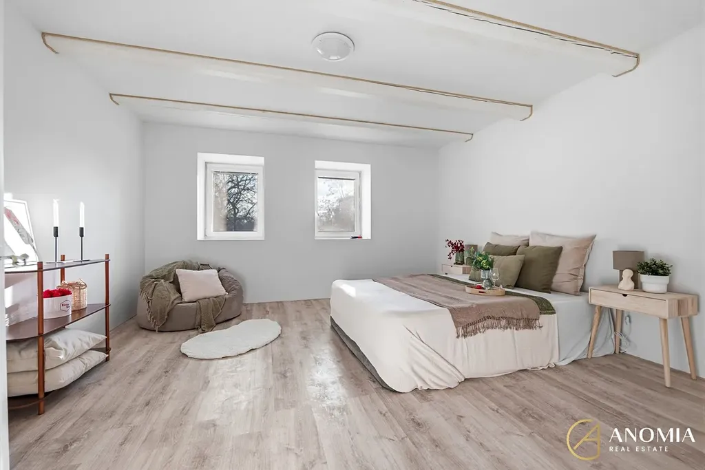 Součástí domu je také vedlejší obytná část se dvěma místnostmi – samostatný vejminek – který rozšiřuje možnosti využití celé nemovitosti. Díky svému oddělení od hlavní části domu poskytuje vlastní zázemí a je tak ideálním řešením pro vícegenerační bydlení. Zároveň může skvěle posloužit jako prostor pro podnikání, domácí kancelář nebo například k pronájmu.
