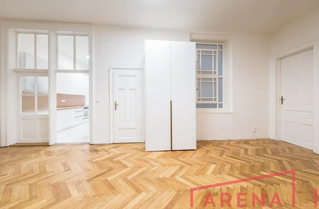 Interiér prošel citlivou renovací – nové parkety podtrhují noblesu vysokých stropů a velkých místností. Byt nabízí čtyři samostatné, nádherně světlé pokoje, které jsou neprůchozí, což zajišťuje maximální soukromí a komfort pro každého člena domácnosti. Dispozice bez průchozích místností je jednou z hlavních předností tohoto bytu a vyhoví jak rodinnému bydlení, tak kombinaci bydlení a práce z domova.