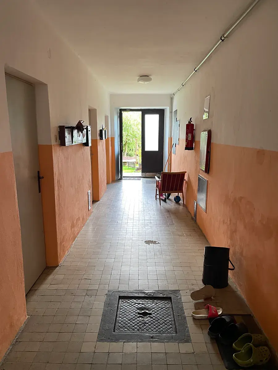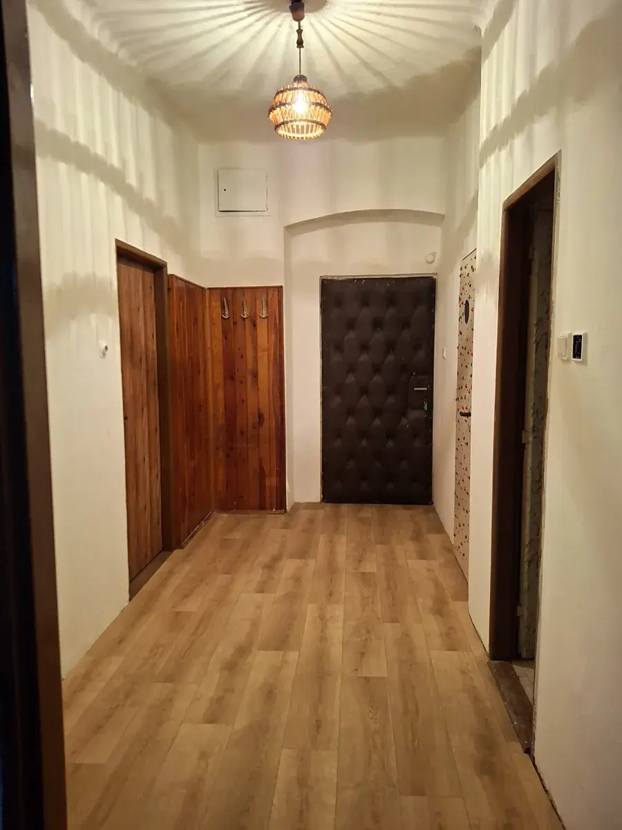Srdcem celého bytu je prostorná kuchyně, která nabízí velkorysé místo pro umístění rodinného jídelního stolu. Čeká zde na vás zcela nová kuchyňská linka vybavená plynovým sporákem a velkou výhodou je také praktická spíž pro pohodlné uskladnění potravin. Do bytu se vstupuje přes chodbu, ze které je přístup do dalších místností. Hlavní obytnou část tvoří velký obývací pokoj, jehož dominantou je krbová vložka. Ta nejen dotváří velmi útulnou atmosféru, ale představuje i skvělou alternativu pro ekonomické vytápění bytu. Dispozici bytu dále doplňuje samostatný neprůchozí pokoj, ideální jako ložnice, a koupelna s vanou a toaletou.